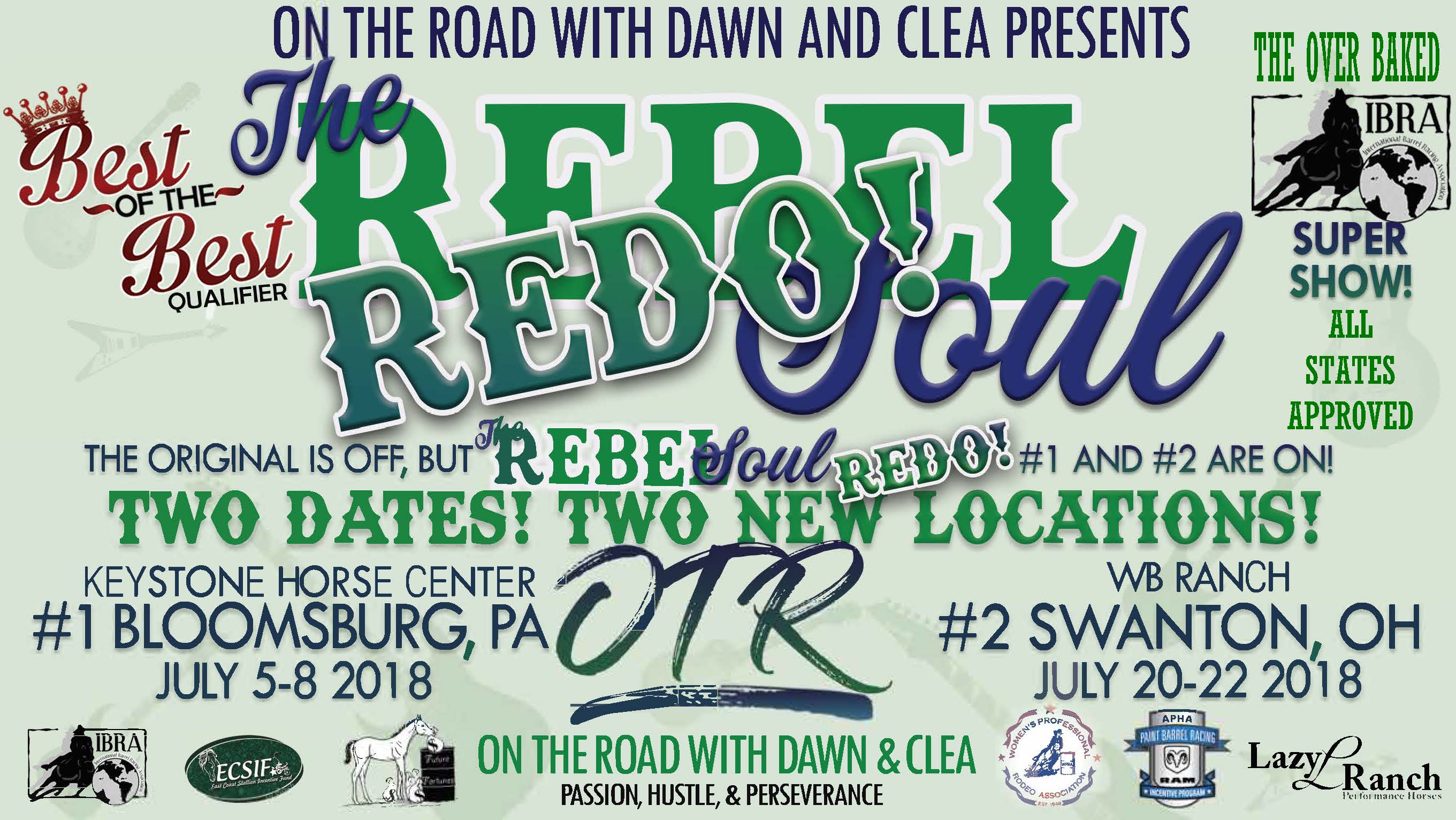 Rebel Soul Redo #2 – We will be holding a show at WB Ranch July 20-22, 2018 it will be a BOTB Qualifier, have an OTR Futurity, have ECSIF money and more….. We will have all details this week as well as a list of all OTR Futurity shows from here forward for you to attend to try to get in on that $10,000 OTR 2D Futurity Finals!