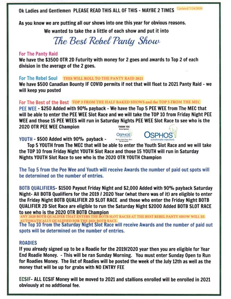 We will not have the normal BOTB ceremonies and all the usual and although this will not be your typical BOTB Show we will do our best to bring you an enjoyable weekend of barrel racing. Stay tuned for details!