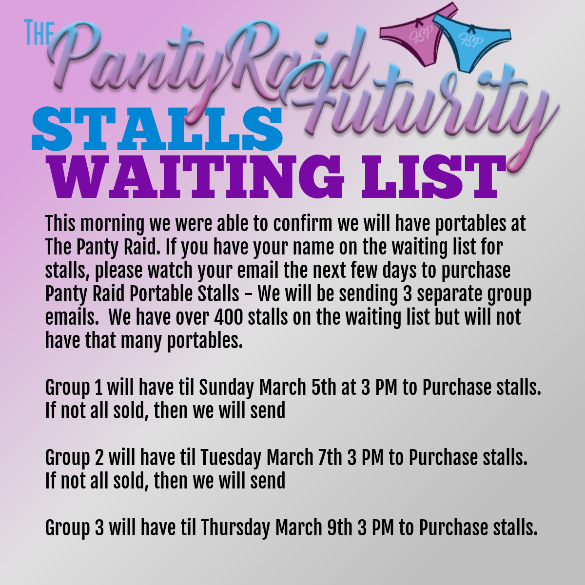 ATTENTION THOSE ON THE PANTY RAID STALL WAITING LIST