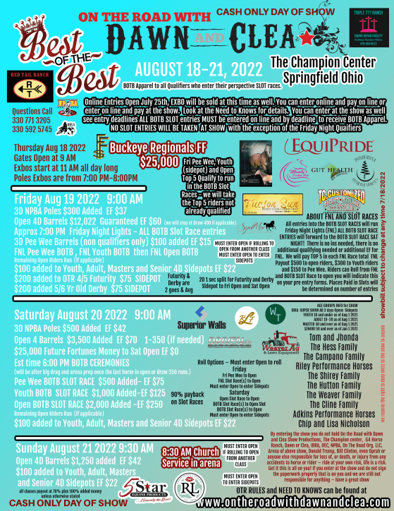 Entries are on line or at the show entries only NO MAIL, EMAIL or TEXT On line Entries will open…